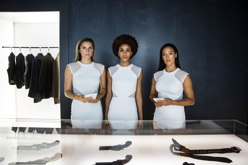 Those lucky enough to win the complimentary visit to the western-themed fantasy world were escorted into the Delos office, where a host checked them in before directing them to the apparently sterile waiting room, sparsely decorated with weapons-of-choice on view, actual props from the series, a sample of of guests’ potential wardrobe, and a small group of hosts programmed to keep guests entertained as they waited for the next portion of their experience to occur.