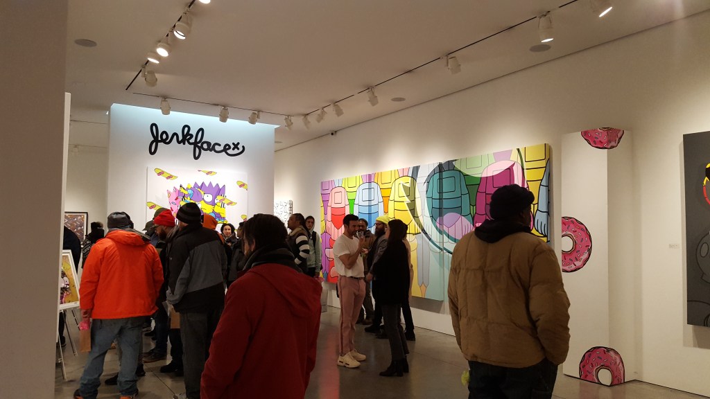 Besides the prints, this exhibit hosts a room that has been decorated by Jerkface. It is adorned with a pink donut mural and contains benches and blow-ups. It’s both fun and beautiful.