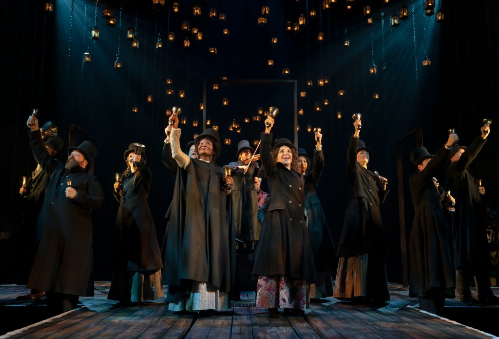 This Broadway production is pretty faithful to the old text. There are some relationship additions, like Scrooge’s abusive father. Yet overall, this is a bare-bones show. The set is also simplistic, which I enjoyed. It consists of just lanterns and doorframes, yet somehow the movement conveys all the audience needs.