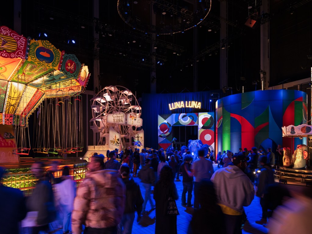 Luna Luna was a traveling carnival curated by Austrian artist André Heller in 1987. The project enlisted some of the era’s most iconic creatives to design carnival rides and attractions, blending fine art with whimsical amusement park fun. After its initial run in Hamburg, Germany, the collection disappeared and was largely forgotten — until it was rediscovered in a storage locker in Texas just a few years ago and brought back to life. That backstory alone adds a layer of fascination to the experience, setting the stage for an exhibition that feels almost mythical.