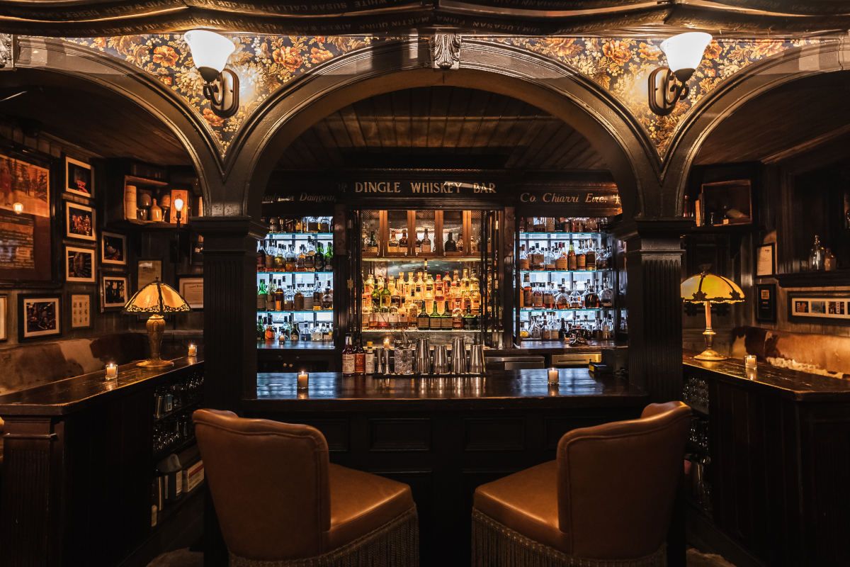 From the outside, the building seems modest, but once you’re inside, it feels endless. The layout is a labyrinth of interconnected rooms and bars, each with its own name and atmosphere. There’s the wood-paneled Independence Bar, the moody Dingle Whiskey Bar, and tucked-away nooks like Lafayette’s Hideout. It’s the rare kind of place where you could start the night in one room and end it somewhere else entirely without ever leaving the building.