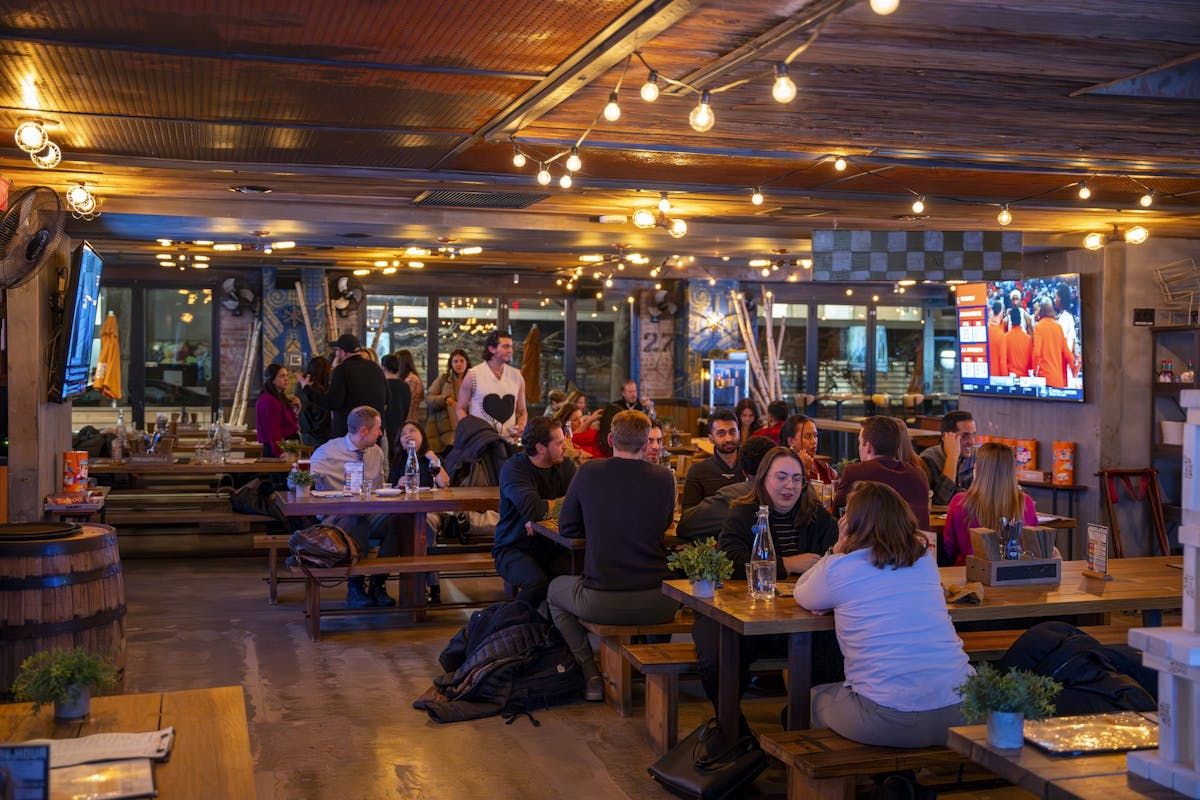 This is the kind of spot where you walk in and go, “Wait, why don’t I come here more often?” It’s massive by New York standards, with high ceilings, long tables, and an actual sense of airiness that most bars in the city only dream of. There’s ping pong. There are pinball machines. There’s even a good-sized outdoor patio when the weather cooperates. It’s the type of place that feels equally great for a chill night out or a “sneak out of the office during lunch for a beer” kind of vibe. Not that we’re endorsing that—but we’re also not not endorsing that.